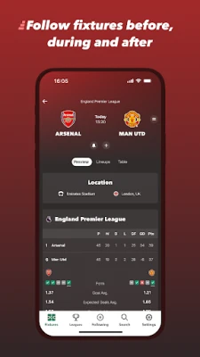 สัมผัสประสบการณ์การติดตามฟุตบอลที่ออกแบบมาเพื่อคุณโดยเฉพาะ ด้วยการแจ้งเตือนที่ปรับแต่งได้ ช่วยให้คุณไม่พลาดทุกโมเมนต์สำคัญของทีมโปรด รวมถึงอัปเดตสถานการณ์การแข่งขันผ่านวิดเจ็ตสดบนหน้าจอโทรศัพท์ของคุณ ไม่ว่าจะเป็นการเคลื่อนไหวของเกม การครองบอล การยิงเข้ากรอบ หรือผลการแข่งขัน ผู้ใช้สามารถเจาะลึกเข้าไปในทุกรายละเอียดของเกมได้อย่างง่ายดาย ตั้งแต่การวิเคราะห์สถิติแบบตัวต่อตัวของแต่ละทีม ไปจนถึงฟอร์มการเล่นของนักเตะแต่ละคน