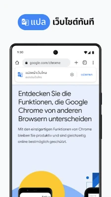สัมผัสประสบการณ์การท่องเว็บที่เหนือระดับและชาญฉลาดที่สุดด้วย Chrome สุดยอดเบราว์เซอร์ที่ขับเคลื่อนโดยพลังของ Google ดำดิ่งสู่โลกแห่งข้อมูลที่ไร้ขีดจำกัด ค้นพบทุกคำตอบที่คุณต้องการได้อย่างฉับไวผ่านการค้นหาอัจฉริยะของ Google หรือแม้แต่สั่งการด้วยเสียงโดยไม่ต้องแตะหน้าจอ ไม่เพียงเท่านั้น คุณยังสามารถสำรวจสิ่งรอบตัวด้วย Google Lens เพียงใช้กล้องของคุณเพื่อค้นหาข้อมูลสิ่งที่คุณเห็น และก้าวข้ามกำแพงภาษาด้วย Google แปลภาษา ที่พร้อมจะเปิดโลกอินเทอร์เน็ตในกว่า 130 ภาษา ให้คุณเข้าใจเนื้อหาทั้งเว็บไซต์ได้ง่ายๆ เพียงแค่คลิกเดียว