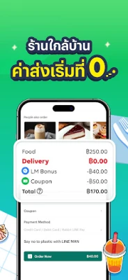LINE MAN มุ่งมั่นเพื่อคนไทย ให้ทุกการสั่งอาหารคุ้มค่ายิ่งขึ้น ด้วยค่าส่งเริ่มต้น 0 บาท รองรับโครงการคนละครึ่ง พร้อมส่วนลดสูงสุด 60% และข้อเสนอพิเศษมากมาย ให้คุณประหยัดได้ทุกวัน