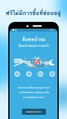 "หน้าจอล็อค" ถูกออกแบบมาเพื่อความเรียบง่ายแต่เปี่ยมด้วยประสิทธิภาพ เพียงแค่แตะที่ไอคอนของแอปฯ หน้าจอของคุณก็จะถูกล็อกทันที ให้การตอบสนองที่ฉับไวและแม่นยำ ปกป้องความเป็นส่วนตัวของคุณจากสายตาที่ไม่พึงปรารถนาได้อย่างรวดเร็ว ไม่ว่าคุณจะอยู่ในที่สาธารณะหรือเพียงแค่วางโทรศัพท์ทิ้งไว้ แอปนี้ทำหน้าที่เป็นปุ่มเปิด/ปิดเสมือน มอบความปลอดภัยและความอุ่นใจให้แก่ผู้ใช้งาน นอกจากนี้ ด้วยขนาดแอปที่กะทัดรัด จึงไม่กินพื้นที่จัดเก็บหรือส่งผลกระทบต่อประสิทธิภาพการทำงานของโทรศัพท์ มั่นใจได้ถึงประสบการณ์ที่ราบรื่นและไม่สะดุด