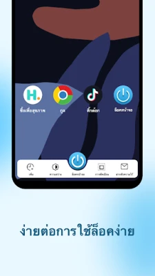 ทำให้การปิดและล็อคหน้าจอของคุณง่ายดายเพียงปลายนิ้วสัมผัส ด้วยแอปพลิเคชันที่ช่วยให้คุณปิดหน้าจอได้ทันทีด้วยการแตะเพียงครั้งเดียว เพิ่มความสะดวกสบายและถนอมปุ่มเปิด/ปิดเครื่องของคุณ