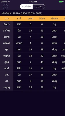 สัมผัสประสบการณ์การผูกดวงไทยที่ครบครันและพร้อมใช้งานทันที ด้วยระบบคำนวณตนุลัคน์และตนุเศษให้เสร็จสรรพ ช่วยประหยัดเวลาและลดความผิดพลาดในการตั้งดวง นอกจากนี้ ยังรองรับระบบโหราศาสตร์ที่สำคัญหลากหลายรูปแบบ ไม่ว่าจะเป็นราศีจักร, กาลจักร, ลัคนาจร, นวางค์จักร และตรียางค์จักร เพื่อให้คุณได้ข้อมูลเชิงลึกที่แม่นยำและครบถ้วน พร้อมแสดงรายละเอียดสำคัญ เช่น วันย้ายราศี, มาตรฐานดาว, ก๊ก, ตำแหน่งพิเศษของดาว, รวมถึงองศาและลิปดาอย่างละเอียด เพื่อการวิเคราะห์ที่ครอบคลุมในทุกมิติ